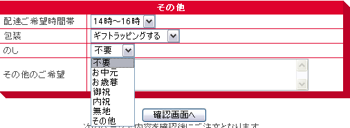 次は「包装」に関する選択を頂きます。
