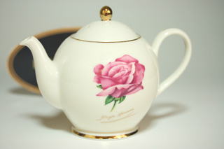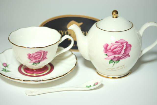 バラの大好きな方にはたまらないティーセット。感謝の心をこんなバラにのせてお届けしたい一品です。